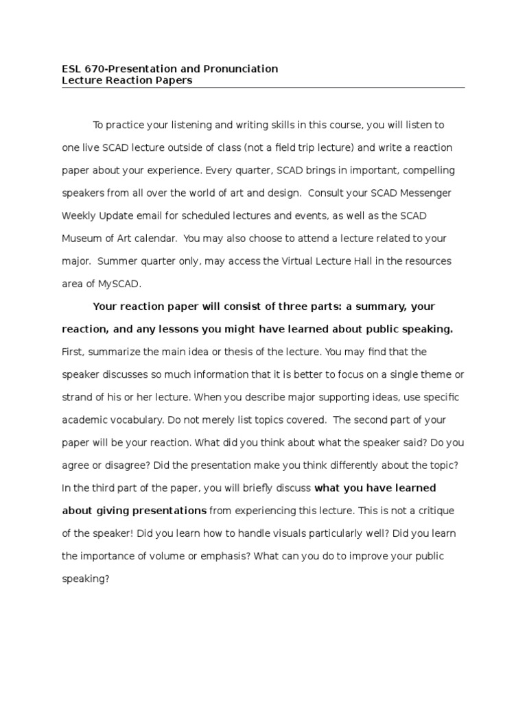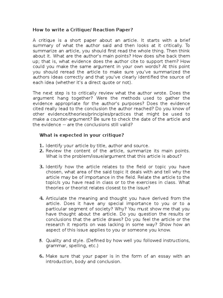 Write down ideas for the introduction and body paragraphs. Writing a reaction paper entails giving your opinion or comments about a particular text or media. How to write a reaction paper. The most important part of preparing is to study up, so really make sure that you've read around the topic well and then some. In this article, you'll learn everything you need to know about how to write a reaction paper to an article along with a reaction paper example to get you started. Still, many students struggle with this type of paper, even if they know this simple answer to the question what is the first part a reaction paper template is usually one or two paragraphs long. It has to contain certain bits that will help your college professor see that you have done your homework right. Making preparations is key to writing a great reaction paper. Reaction paper requires close reading, attention to detail, analysis and interpretation of the text, and ability to give commentary. Also, make your topics for reaction response paper up to date. Writing a response or reaction paper. How is the assigned work related to ideas and concerns discussed in the course for which you are preparing the paper? English for academic and professional purposes: